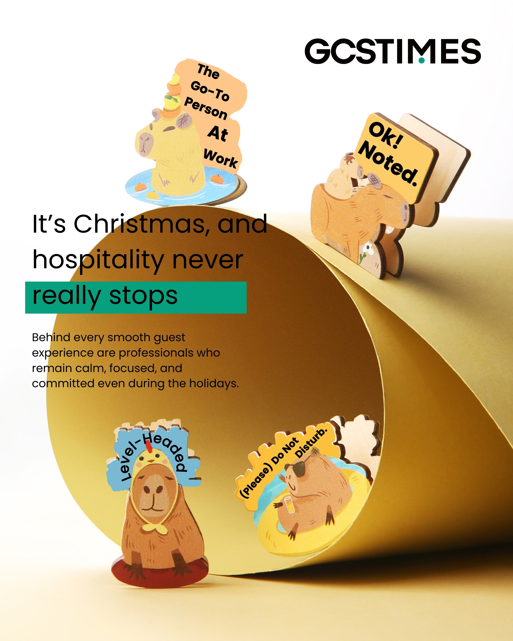 As 2025 draws to a close, this capybara series is our small tribute to those who keep hospitality moving through the holidays. To every hotel professional working behind the scenes this Christmas and beyond: thank you for being the calm in the chaos.