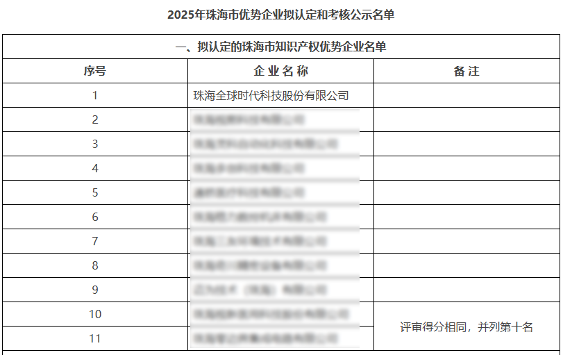 此次获评“珠海市知识产权优势企业”,是珠海市政府对全球时代知识产权全链条综合实力的权威认可。该认定作为市级高规格荣誉,每年全市新认定企业数量严格控制在10家左右。本年度在43家申报企业中,全球时代以评审总分第一的成绩成为最终入选的11家企业之一。